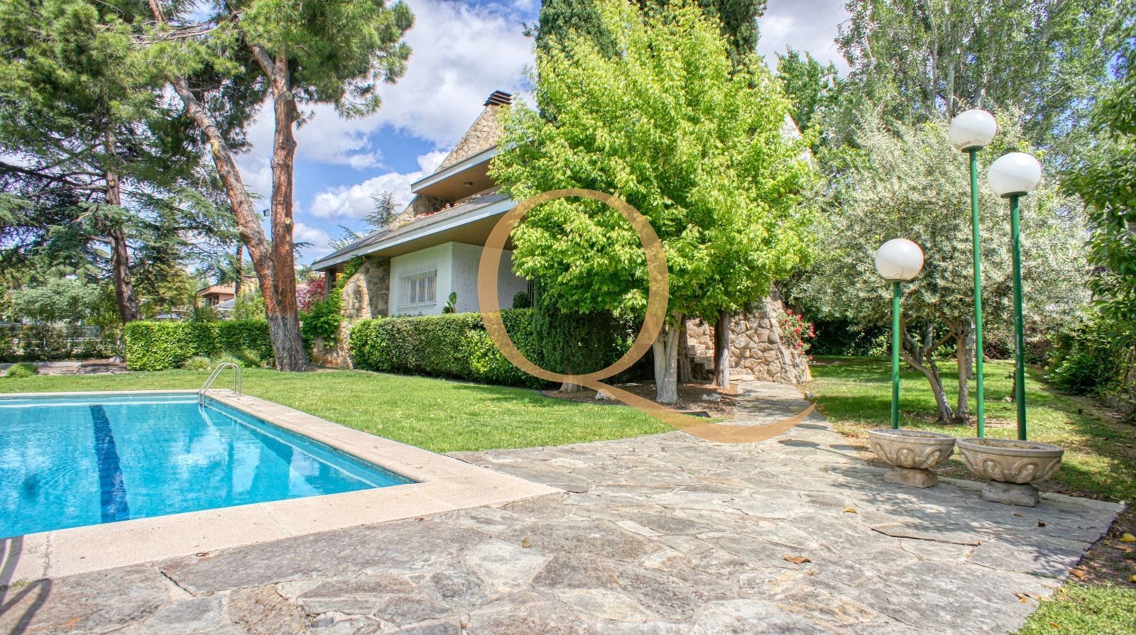 Quartiers presenta este fantástico chalet independiente, ubicado en una de las arterias principales del Parque Conde de Orgaz. Destaca la zona de recibo de la vivienda, con grandes espacios y una gran luminosidad gracias a su orientación Sur. En la planta superior se localizan todos los dormitorios principales, 5 en total, amplios y acogedores.